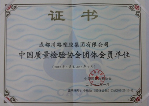 2012-02-09經(jīng)中國質(zhì)量檢驗協(xié)會對川路產(chǎn)品質(zhì)量的抽查、檢驗及對川路質(zhì)保體系的審核,授予我司 “中國質(zhì)量檢驗協(xié)會團體會員單位”稱號。..全文 -