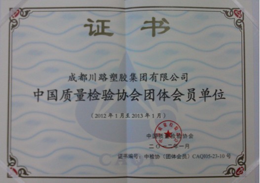 經(jīng)中國(guó)質(zhì)量檢驗(yàn)協(xié)會(huì)對(duì)川路產(chǎn)品質(zhì)量的抽查、檢驗(yàn)及對(duì)川路質(zhì)保體系的審核,授予我司 “中國(guó)質(zhì)量檢驗(yàn)協(xié)會(huì)團(tuán)體會(huì)員單位”稱(chēng)號(hào)。
