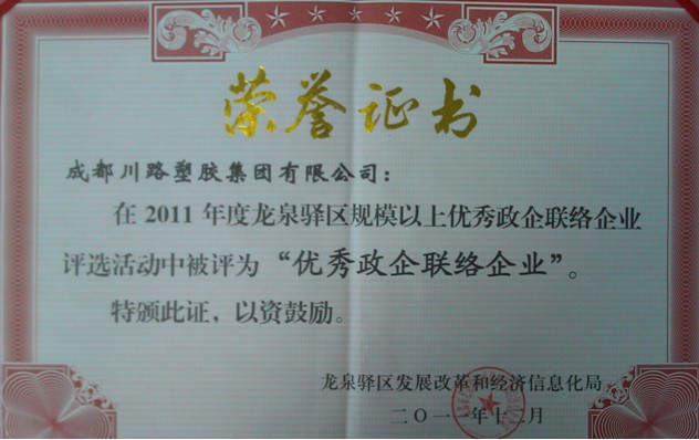 熱烈祝賀我司再度榮獲2011年度 “優(yōu)秀政企聯(lián)絡(luò)企業(yè)”
