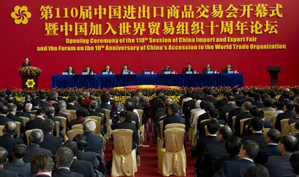 10月14日,第110屆中國進出口商品交易會(廣交會)開幕式暨中國加入世界貿(mào)易組織10周年論壇在廣州隆重舉行。中共中央總書記、國家主席、中央軍委主席胡錦濤致信祝賀,中共中央政治局常委、國務(wù)院總理溫家寶出席開幕式并發(fā)表講話。