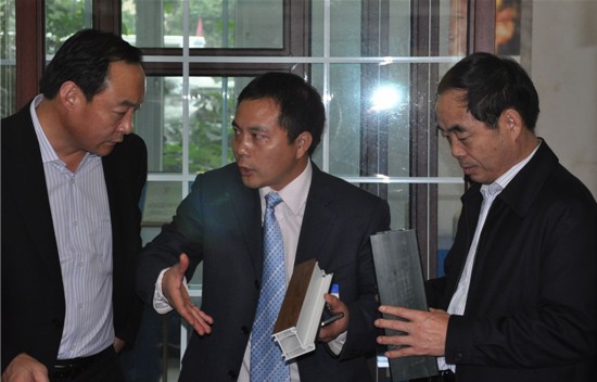 圖2:徐總向駱省長(中間)一行介紹川路型材生產(chǎn)工藝