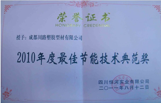 “川路型材”榮獲四川恒河實業(yè)“2011年度最佳節(jié)能技術(shù)典范獎”