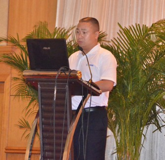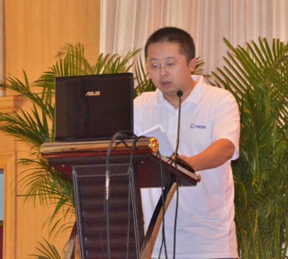 圖18:型材銷售云南區(qū)經(jīng)理凃志賢先生作上半年工作報(bào)告 | 圖19:型材售后服務(wù)工程師肖波先生作上半年工作報(bào)告 |
