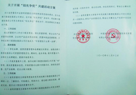 圖為:我司與省質(zhì)監(jiān)局質(zhì)量處黨支部簽署的“關(guān)于開展“創(chuàng)先爭優(yōu)”共建活動(dòng)方案”