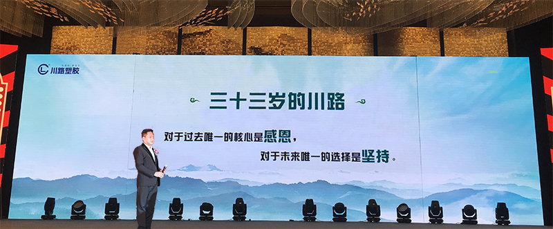 12日下午1:30,川路塑膠集團2019銷售年會會議召開,會議由銷售公司總經(jīng)理助理張鵬主持,會上,川路集團董事總經(jīng)理劉昆作了名為《貢獻川路營銷智慧,秀出大家美好未來》的主題演講,其中講到:“33年企業(yè)史,我們不忘初心,卓然而立,我們?yōu)榛鶚I(yè)長青蓄力。40年改革開放,我們以5000年原力覺醒創(chuàng)造未來。致敬40年,今天我們見證!中國管材界的精英、中國門窗界的翹楚,更多的對未來抱有巨大理想的同行者,我們從祖國各地匯集到這里。我們將見證川路塑膠,中國的世界級品牌的誕生,更多的、持續(xù)的創(chuàng)新實踐,當然我們本身就是參與者、推動者,是力量中堅!”最后,劉總引用“人民對美好生活的向往,就是我們的奮斗目標!”同各位嘉賓相互勉勵。