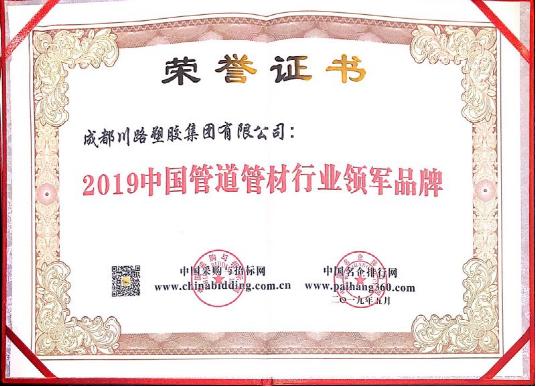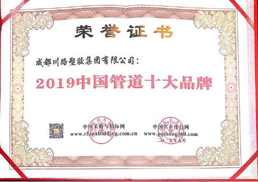 川路獲評(píng)“2019年度中國塑料管道十大品牌、 2019年度中國塑料管道行業(yè)領(lǐng)軍企業(yè)”