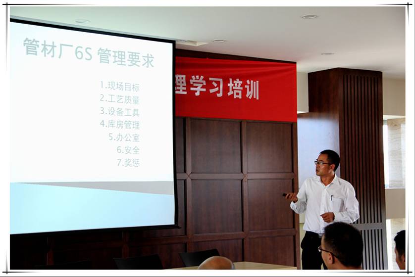 本次培訓(xùn)結(jié)合管材廠的實(shí)際情況,讓各級(jí)生產(chǎn)管理人員對(duì) 6S管理的基本概念有了初步的了解,培訓(xùn)講師對(duì)“整理、整頓、清掃、清潔、素養(yǎng)、安全”六個(gè)要素的具體內(nèi)容進(jìn)行了詳細(xì)的講解,力爭(zhēng)將其運(yùn)用到實(shí)際生產(chǎn)管理中,實(shí)現(xiàn)現(xiàn)場(chǎng)管理規(guī)范化;日常工作部署化;物資擺設(shè)標(biāo)識(shí)化;廠區(qū)管理整潔化;人員素養(yǎng)整齊化;安全管理常態(tài)化。
