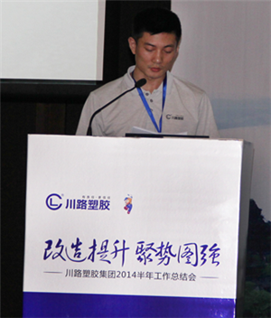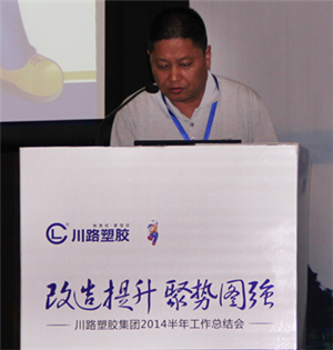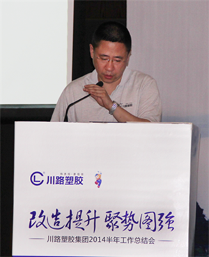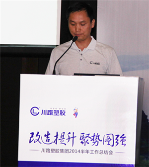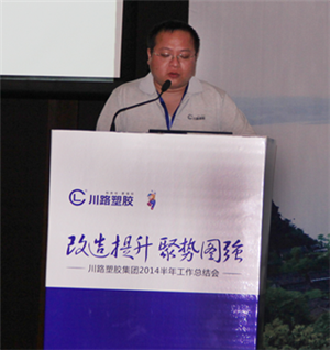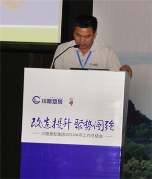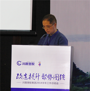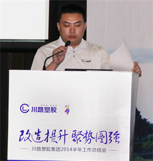劉總首先以數字化的形式直觀的展示了管材、型材近年同期銷售額和產品大類的增長情況;總銷售與上年同期相比為107%;分析了2014年上半年中國房地產企業(yè)銷售面積TOP50榜單。劉總提出“拒絕大公司?。? 讓聽得見炮聲的人來呼喚炮火,讓前方組織有責、有權”的管理思路和工作方法;對團隊負責人提出了更高、更新要求;對川路第四個10年發(fā)展作出了戰(zhàn)略規(guī)劃。