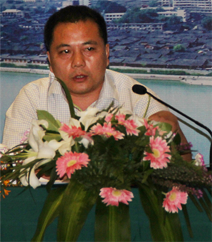 圖16:型材銷售四川西北一區(qū)總經理鐘愿作上半年工作報告 | 圖17:型材銷售家裝部總經理肖波上半年工作報告 | |