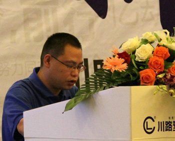 | 圖16:售后服務(wù)部經(jīng)理劉選長作售后上半年工作報告 | 圖17:市場部經(jīng)理陳科霖作上半年工作報告 |