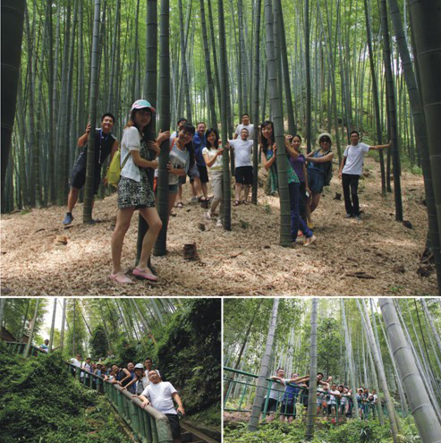 圖30:乘大巴前往旅游地 | 圖31:“翠甲天下”的翡翠長廊合影 |