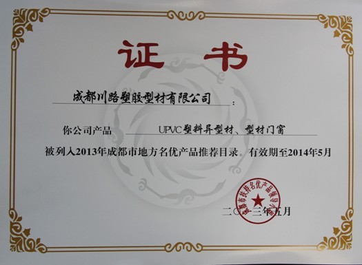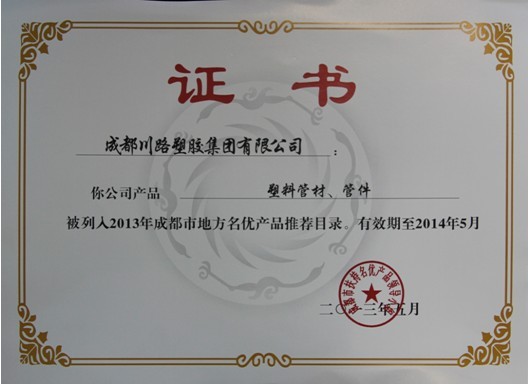 根據(jù)《成都市人民政府辦公廳關(guān)于扶持地方名優(yōu)產(chǎn)品促進(jìn)災(zāi)后重建和經(jīng)濟(jì)發(fā)展的試行意見(jiàn)》要求,成都市扶持名優(yōu)產(chǎn)品領(lǐng)導(dǎo)小組根據(jù)企業(yè)申報(bào)、各區(qū)(市)縣扶優(yōu)辦推薦、市扶優(yōu)辦核實(shí)后,評(píng)定成都川路集團(tuán)有限公司產(chǎn)品系列(塑料管材、管件)和成都川路塑膠型材有限公司產(chǎn)品系列(UPVC塑料異型材、型材門(mén)窗)列入《2013年成都市地方名優(yōu)產(chǎn)品推薦目錄》。成都川路塑膠集團(tuán)有限公司入選2012年成都市工業(yè)企業(yè)納稅前100名名錄。