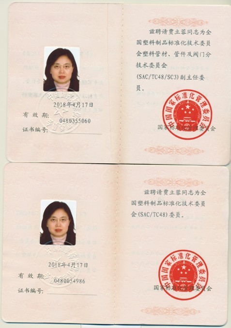 我司副總工賈立蓉女士受聘全國塑料制品標準化技術委員會