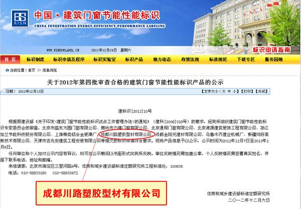 川路型材榮獲“中國(guó)建筑門(mén)窗節(jié)能性能標(biāo)識(shí)認(rèn)證”