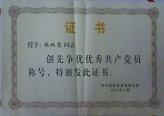 張林霞同志被評為“創(chuàng)先爭優(yōu)優(yōu)秀共產(chǎn)黨員”