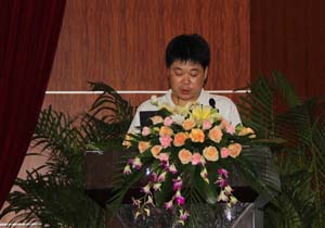 圖4:集團(tuán)財(cái)務(wù)總監(jiān)孫莉芝女士作上半年集團(tuán)財(cái)務(wù)工作報(bào)告 | 圖5:集團(tuán)財(cái)務(wù)經(jīng)理魏波先生作上半年銷售公司財(cái)務(wù)工作報(bào)告 |