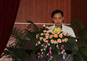 圖20:型材銷售川東區(qū)經(jīng)理張毅先生作上半年工作報(bào)告 | 圖21:銷售公司總經(jīng)理助理曾平愗先生作上半年型材銷售工作報(bào)告 |