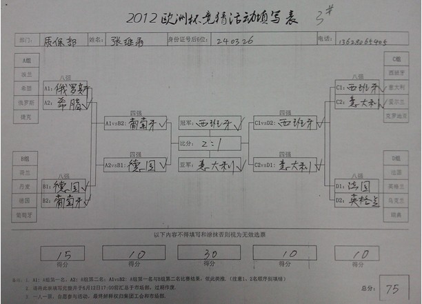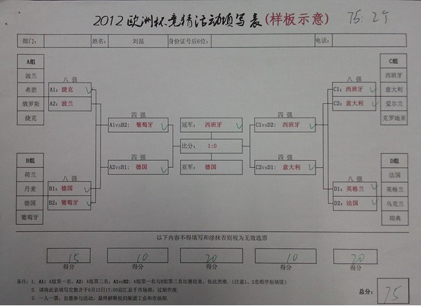 2012歐洲足球錦標賽(歐洲杯)精彩賽事于6月8日在波蘭和烏克蘭如火如荼上演,這場絢爛的足球盛宴點燃了六月的星空,全世界的球迷將享受一個又一個激情盛夏。為提高大家對足球盛宴的互動和豐富廣大川路員工業(yè)余生活,川路工會和市場部組織策劃了一場“2012歐洲杯足球競猜活動”,有獎競猜本屆歐洲杯8強、4強、冠亞軍及決賽比分,活動共設(shè)定一等獎、二等獎、三等獎、四等獎。